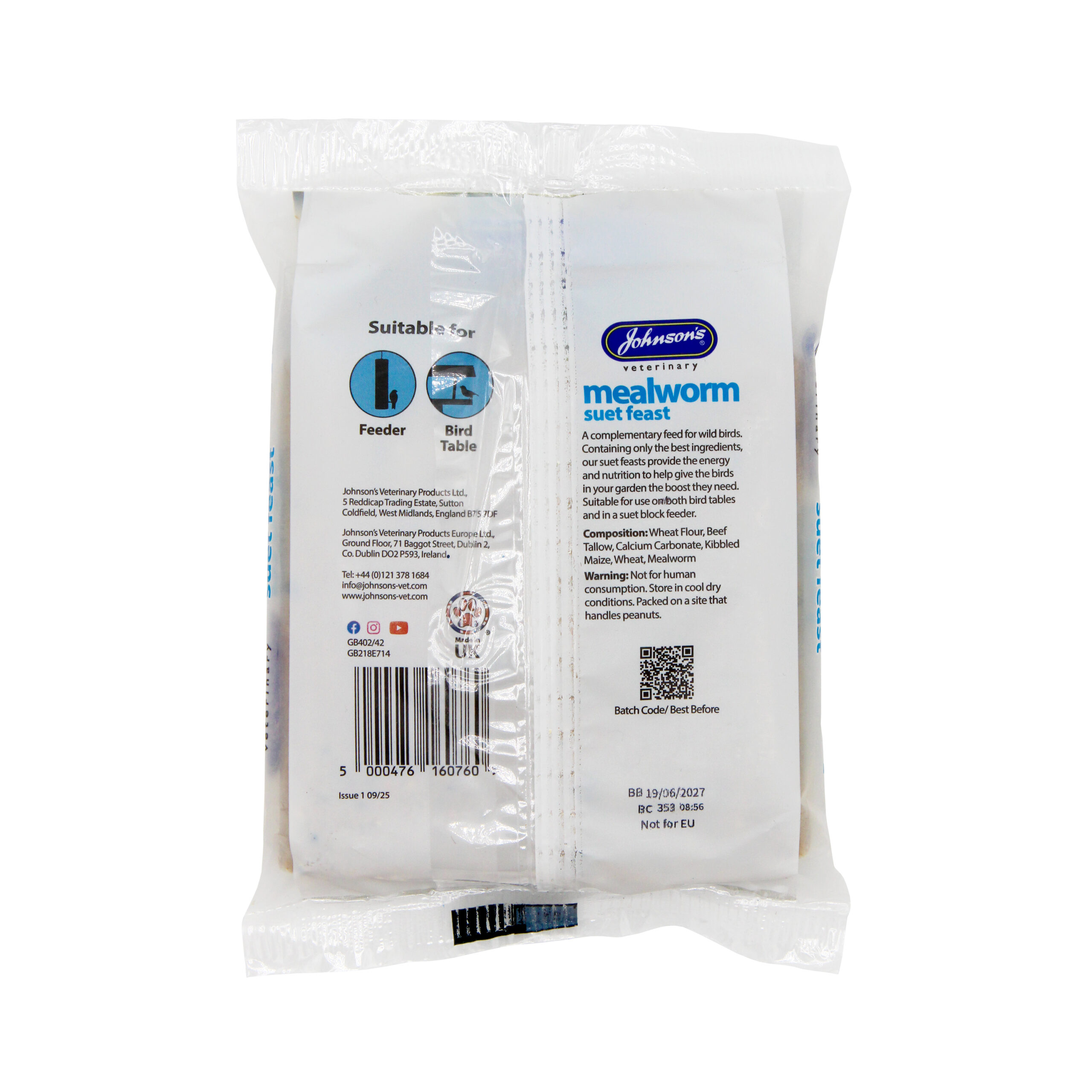 A complementary feed for all wild birds for all year round feeding. Made with only the best ingredients, our Johnson’s Mealworm Suet Feasts include added mealworms to provide a high energy treat that help give the birds in your garden the boost they need.